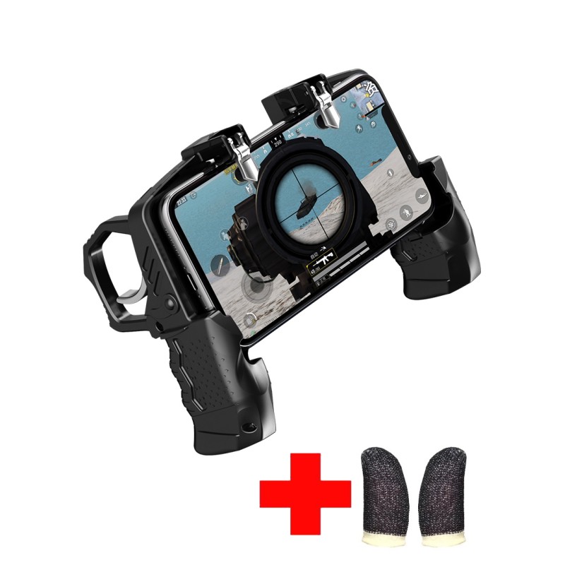 Бездротовий геймпад-тригер з пістолетними ручками джойстик для смартфону Sandy Union PUBG Mobile K21 + напальчники