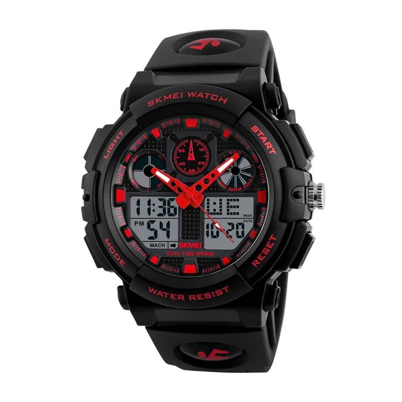 Практична і стильна модель годинника Skmei 1270 З часом японський виробник з’єднується з надійним кварцовим механізмом. Прочний пластиковий корпус з 4-ма кнопками для управління, поліуретановий ремінець з надійною застібкою і відмінно зчислений циферблат. Ви завжди будете проінформовані не тільки точним часом, але й датою, оскільки ця модель обладнана календарями.
