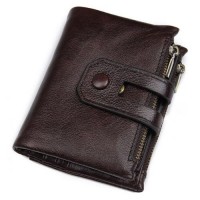 Стильний чоловічий шкіряний гаманець чорного кольору. Аксесуар акуратно прошитий надміцною ниткою світло-коричневого кольору, що надає йому родзинки. Гаманець упакований у текстильний чохол білого кольору.