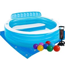 Дитячий надувний басейн Intex 57190-2 «Сімейний», 224 х 216 х 76 см, зі спинкою, із кульками 10 шт, підстилкою, насосом
