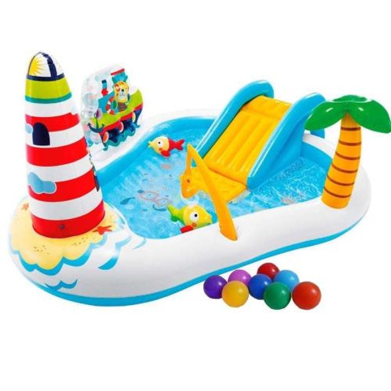 Надувний ігровий центр Intex 57162-1 «Весела Рибалка», 218 x 188 x 99 см, з надувною вудкою, 2 рибки, з кульками 16 шт.