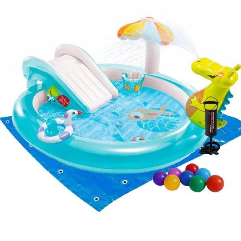 Надувний виріб «Надувний ігровий центр Intex 57165-2 «Крокодил», 201 х 170 х 84 см, з кульками 10 шт, підстилкою та насосом» створений для веселих літніх розваг і комфортного релаксу.