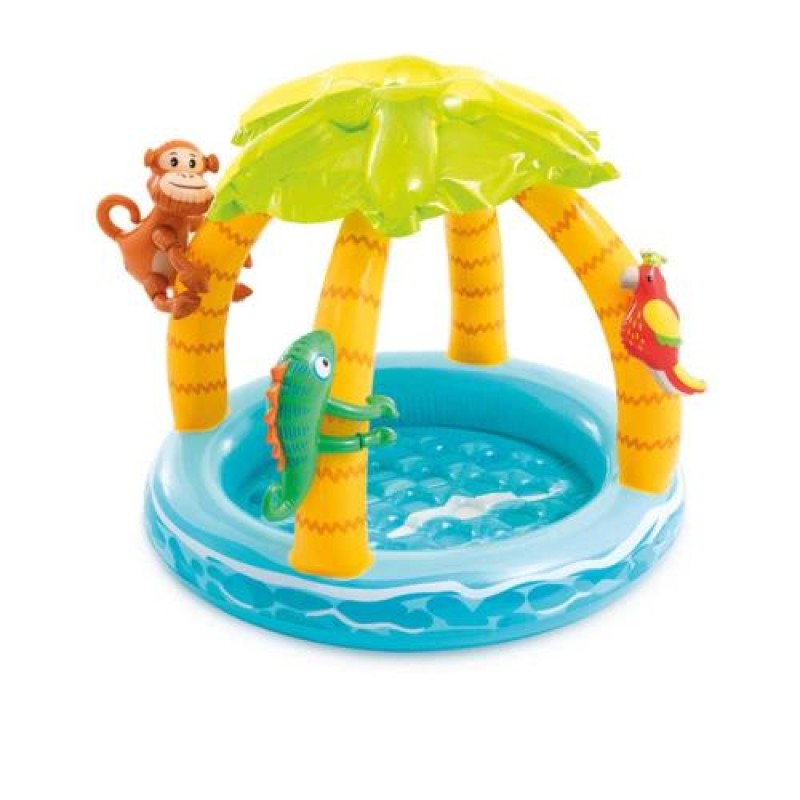 «Дитячий надувний басейн Intex 58417 «Тропічний острів», 102 х 86 см, з навісом» — яскравий аксесуар для відпочинку на воді та біля басейну.