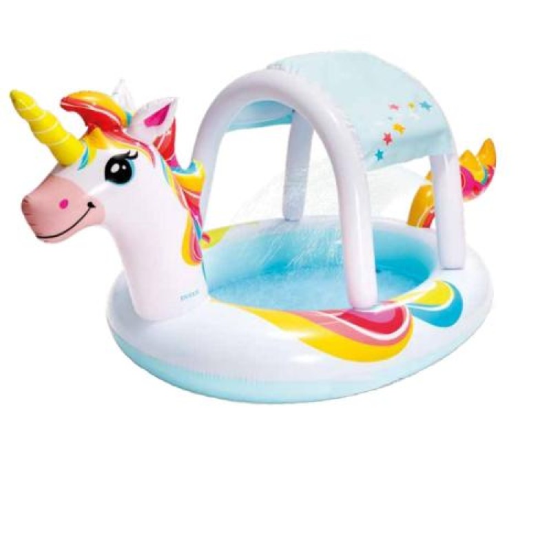 Дитячий надувний басейн Intex 58435 «Єдиноріг» з навісом, фонтаном, 254 х 132 х 109 см