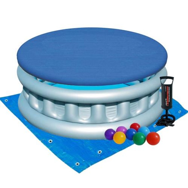 «Дитячий надувний басейн Bestway 51080-3 «Космічний корабель», 152 х 43 см, з кульками 10 шт, тентом, підстилкою та насосом» — яскравий аксесуар для відпочинку на воді та біля басейну.
