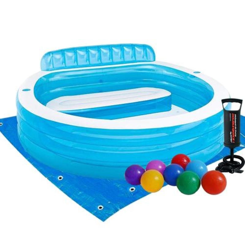 Дитячий надувний басейн Intex 57190-2 «Сімейний», 224 х 216 х 76 см, зі спинкою, із кульками 10 шт, підстилкою, насосом