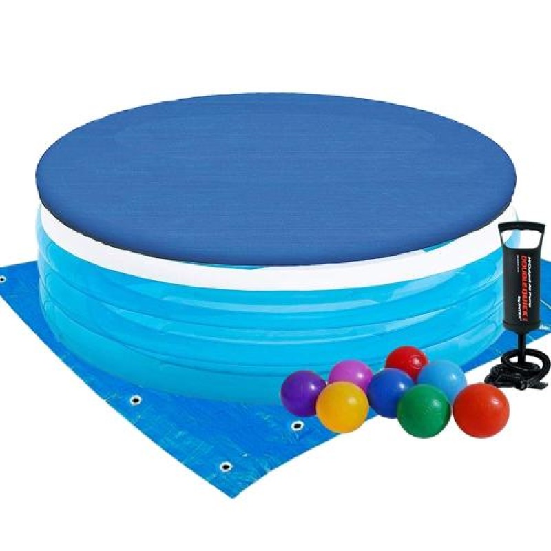 Дитячий надувний басейн Intex 57190-3 «Сімейний», 224 х 216 х 76 см, зі спинкою, із кульками 10 шт, тентом, підстилкою, насосом