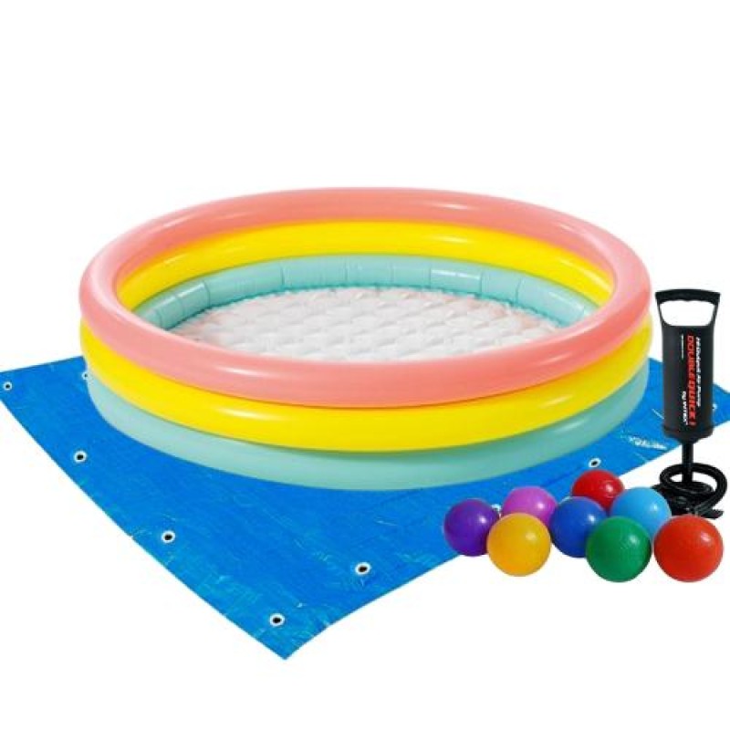 «Дитячий надувний басейн Intex 57422-2 «Кольори заходу сонця», 147 х 33 см, з кульками 10 шт, підстилкою, насосом» допоможе зробити відпочинок на пляжі або біля басейну ще приємнішим.