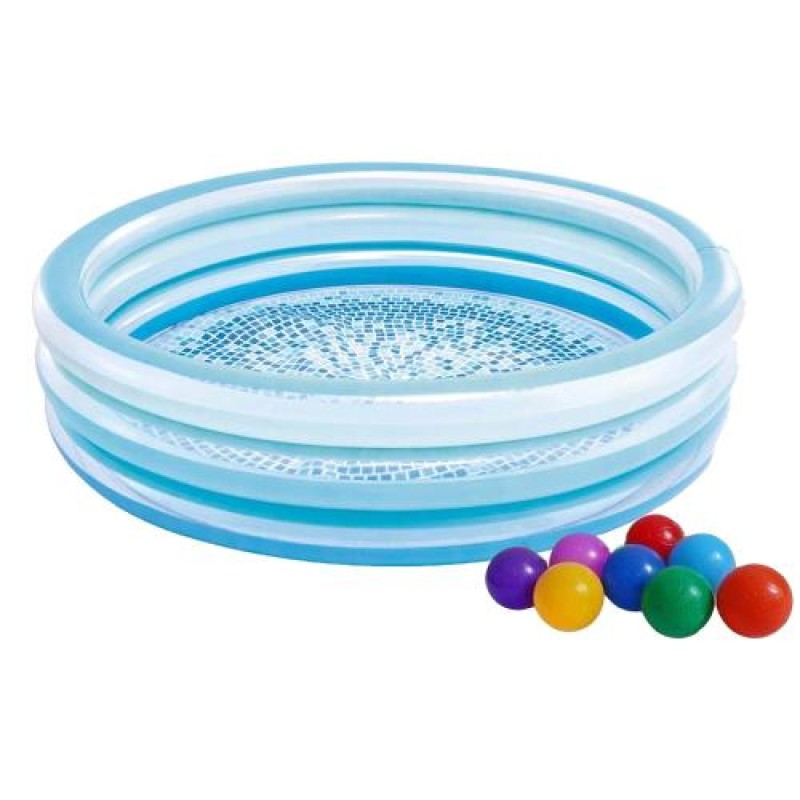 «Дитячий надувний басейн Intex 58467-1 «Блакитне щастя», 147 х 33 см, з кульками 10 шт» — яскравий аксесуар для відпочинку на воді та біля басейну.