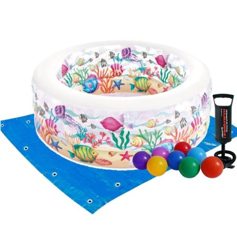 Дитячий надувний басейн Intex 58480-2 «Акваріум», 152 х 56 см, з кульками 10 шт, підстилкою, насосом