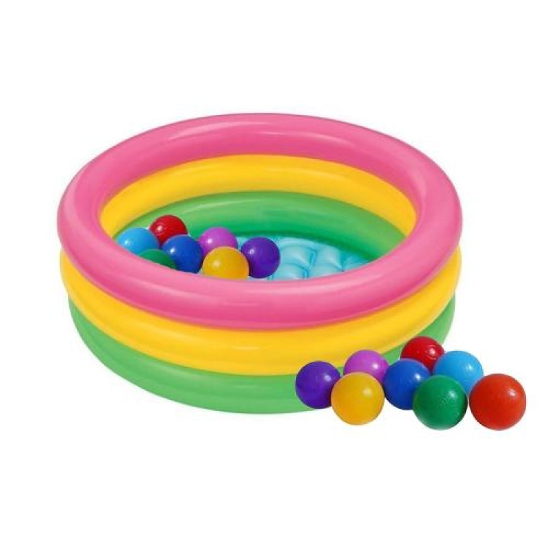 «Дитячий надувний басейн Intex 58924-1 «Райдуга», 86 х 25 см, з кульками 10 шт» допоможе зробити відпочинок на пляжі або біля басейну ще приємнішим.