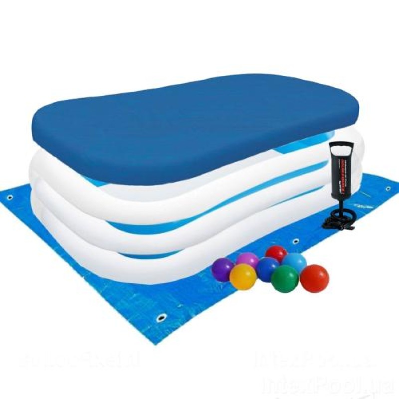 Дитячий басейн Intex 56483-3 «Сімейний», 262 х 175 х 56 см, з кульками 10 шт, підстилкою, тентом, насосом