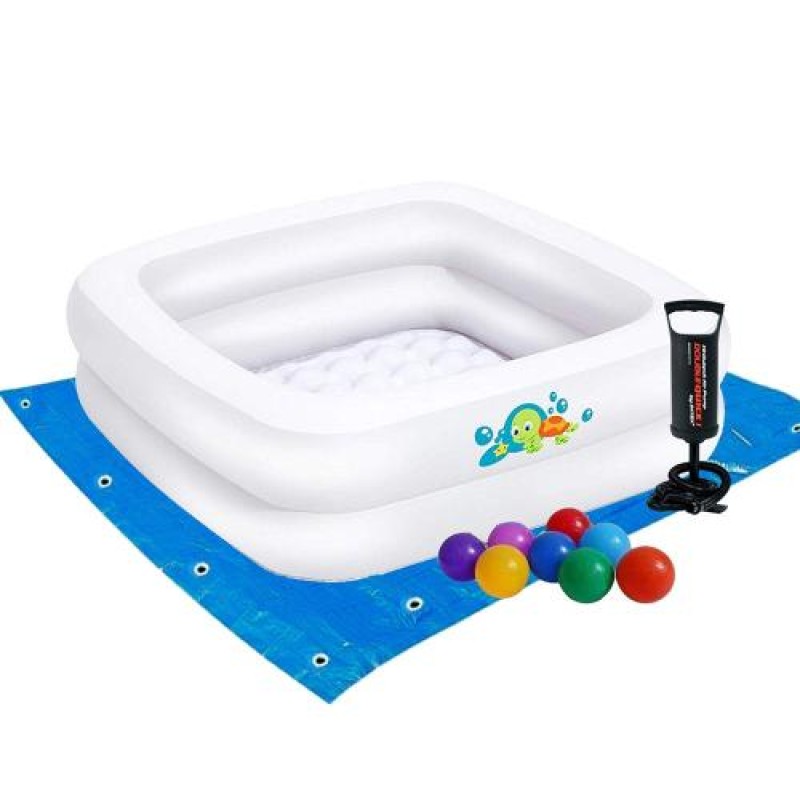 Дитячий надувний басейн Bestway 51116-2, білий, 86 х 86 х 25 см, з кульками 10 шт, підстилкою, насосом