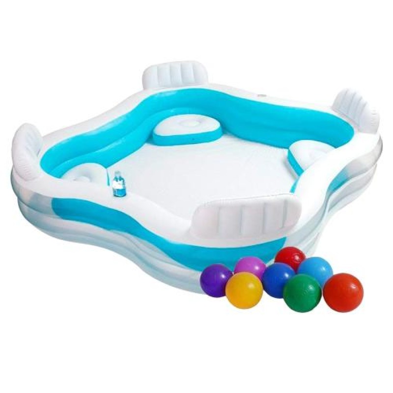 Дитячий надувний басейн Intex 56475-1, 229 х 229 х 66 см, з кульками 10 шт, сидіннями, підсклянниками