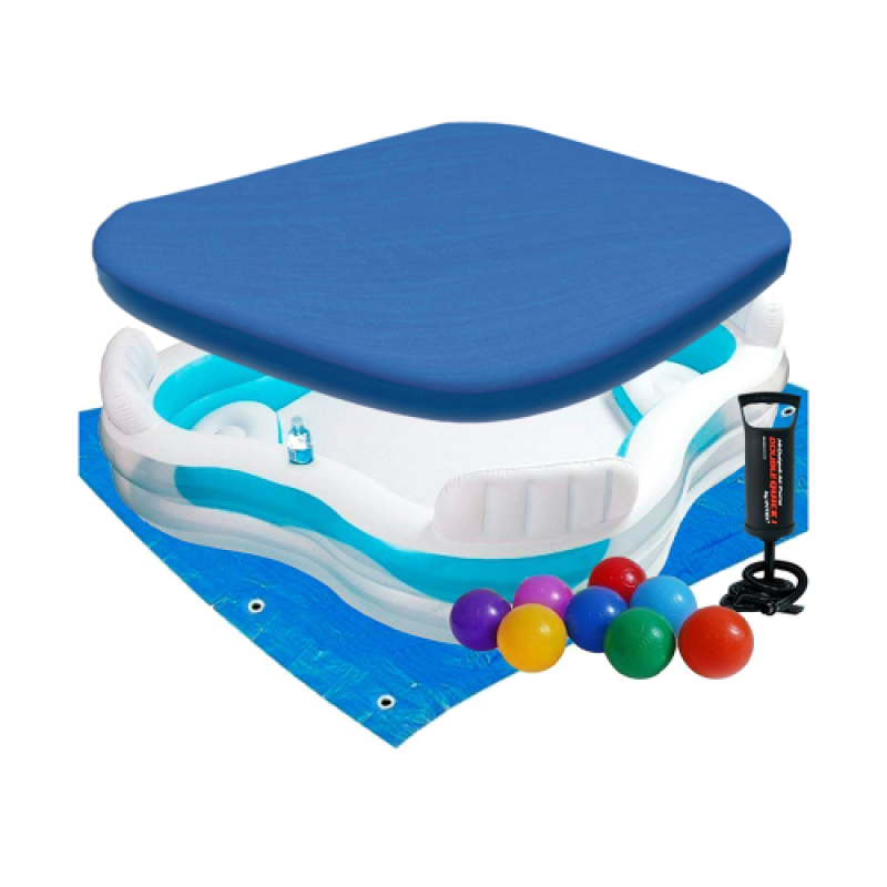 Дитячий надувний басейн Intex 56475-3, 229 х 229 х 66 см, з кульками 10 шт, тентом, підстилкою, насосом