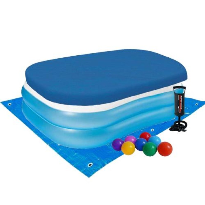 Дитячий надувний басейн Intex 57180-3 «Сімейний», 203 х 152 х 48 см, з кульками 10 шт, тентом, підстилкою, насосом