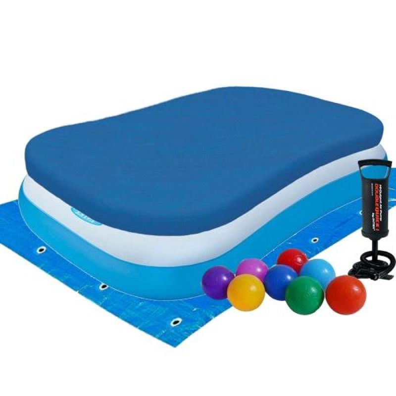 «Дитячий надувний басейн Intex 57403-3, 166 х 100 х 28 см, з кульками 10 шт, тентом, підстилкою, насосом» — яскравий аксесуар для відпочинку на воді та біля басейну.