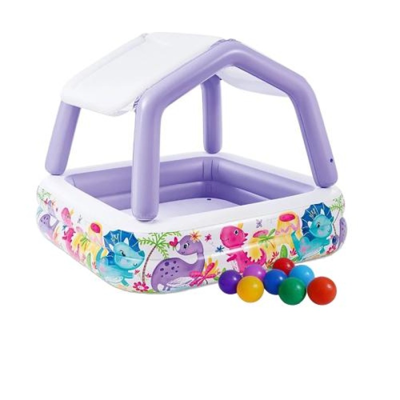 Дитячий надувний басейн Intex 57470-1 «Океан» зі знімним навісом, бузковий, 157 х 157 х 122 (24) см, з кульками 10 шт