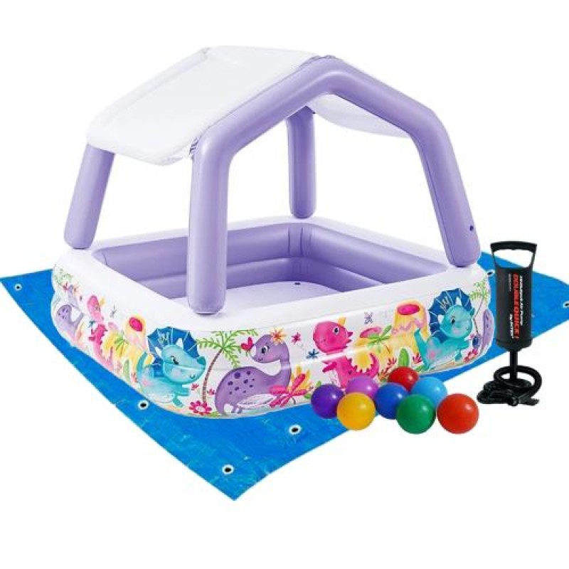 «Дитячий надувний басейн Intex 57470-2 «Океан» зі знімним навісом, бузковий, 157 х 157 х 122 (24) см, з кульками 10 шт, підстилкою та насосом.» допоможе зробити відпочинок на пляжі або біля басейну ще приємнішим.