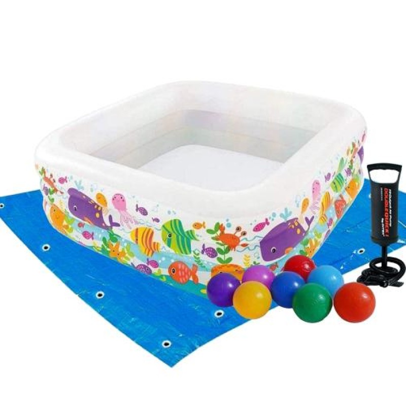 Дитячий надувний басейн Intex 57471-2 «Акваріум», 159 х 159 х 50 см, з кульками 10 шт, підстилкою, насосом