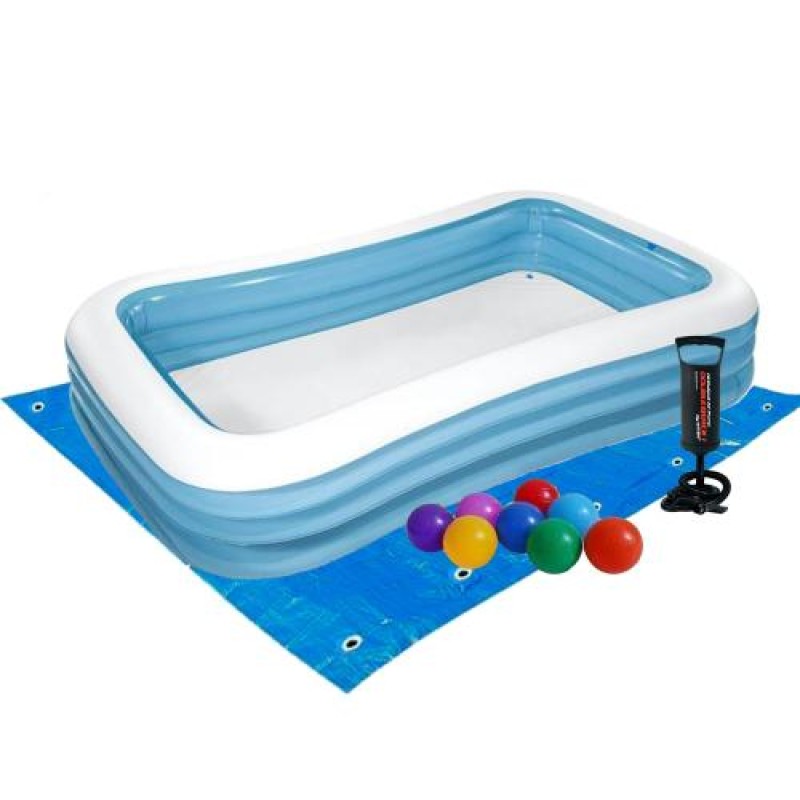 Дитячий надувний басейн Intex 58484-2 прямокутний, 305 х 183 х 56 см, з кульками 10 шт, підстилкою, насосом