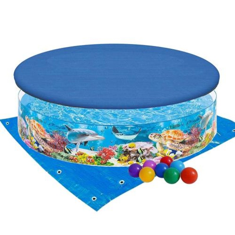 Басейн дитячий каркасний Intex 58472-3 «Океанський риф», 244 х 46 см, з кульками 10 шт, тентом, підстилкою