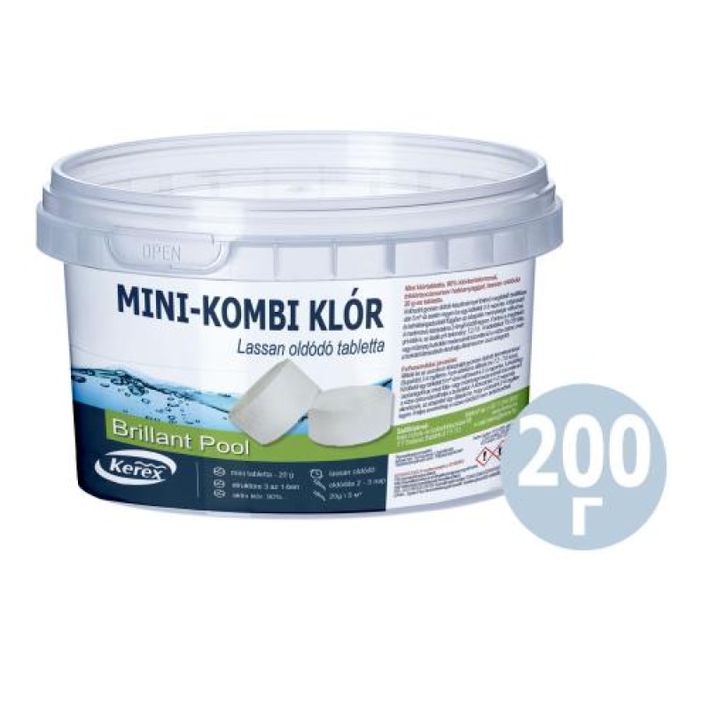Таблетки для басейну "MINI - хлор" Kerex 80033, 200 г (Угорщина). Препарат для очищення від слизу