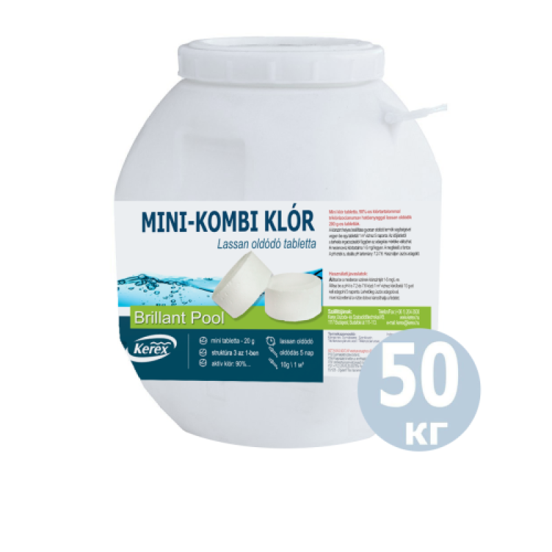 Таблетки для басейну MINI «Комбі хлор 3 в 1»Kerex 80007, 50 кг (Угорщина). Препарат для очищення від слизу