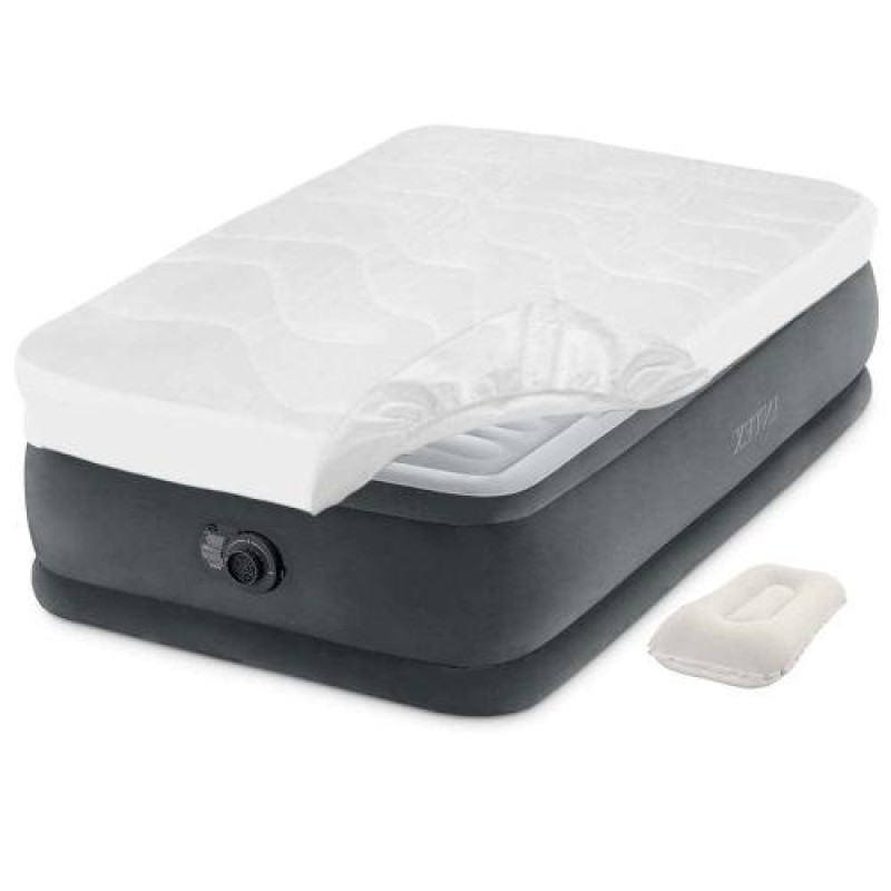 Надувне ліжко Intex 64412-3, 99 х 191 х 46 см, електронасос, наматрацник, подушка. Односпальне