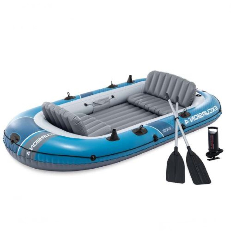 Чотиримісний надувний човен Intex 66324 Excursion 4 Set, 315 х 165 см, (весла, ручний насос). 3-х камерний