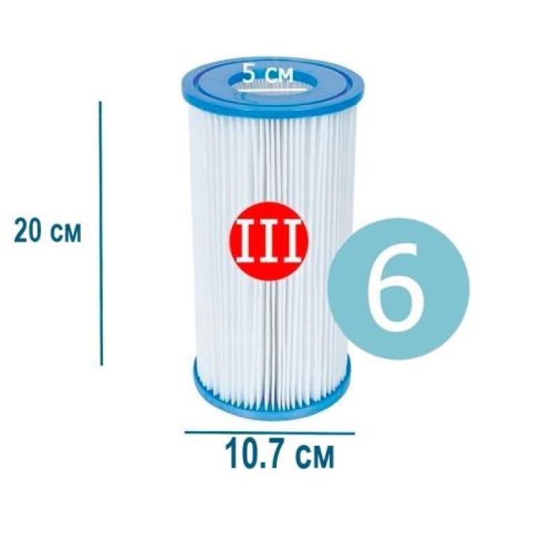 «Змінний картридж для фільтра насоса Bestway P58012 тип «III» 6 шт, 20 х 10.7 см» — корисний елемент для обслуговування басейну та підтримання води у хорошому стані.