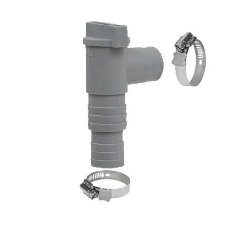 - Розмір (точки з'єднання): • хомутне з'єднання: Ø 3.2 см (під штуцер басейну); • хомутне з'єднання: Ø 3.2 см (під шланг); • різьбове з'єднання: не передбачено (під шланг з гайками), необхідний адаптер-перехідник; • хомут: Ø 3.4 см