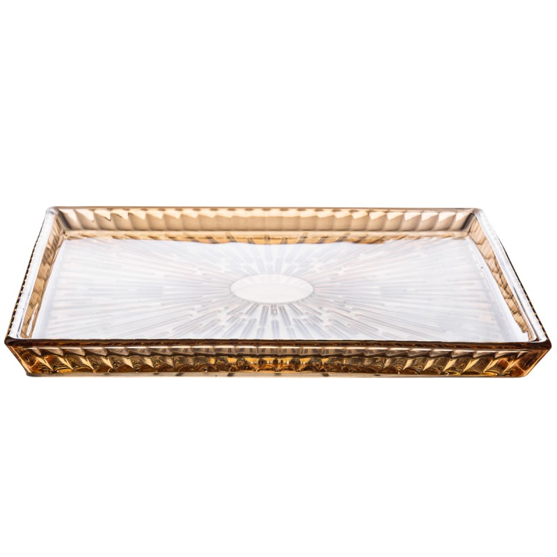 Плоска поверхня дозволяє зручно розміщувати закуски, десерти або інші продукти. Дизайн виробу мінімалістичний, без зайвих декоративних елементів. Завдяки прозорому матеріалу вміст залишається добре видимим, що сприяє ефектній подачі страв. Гладка поверхня не вбирає запахи та легко очищується після використання.