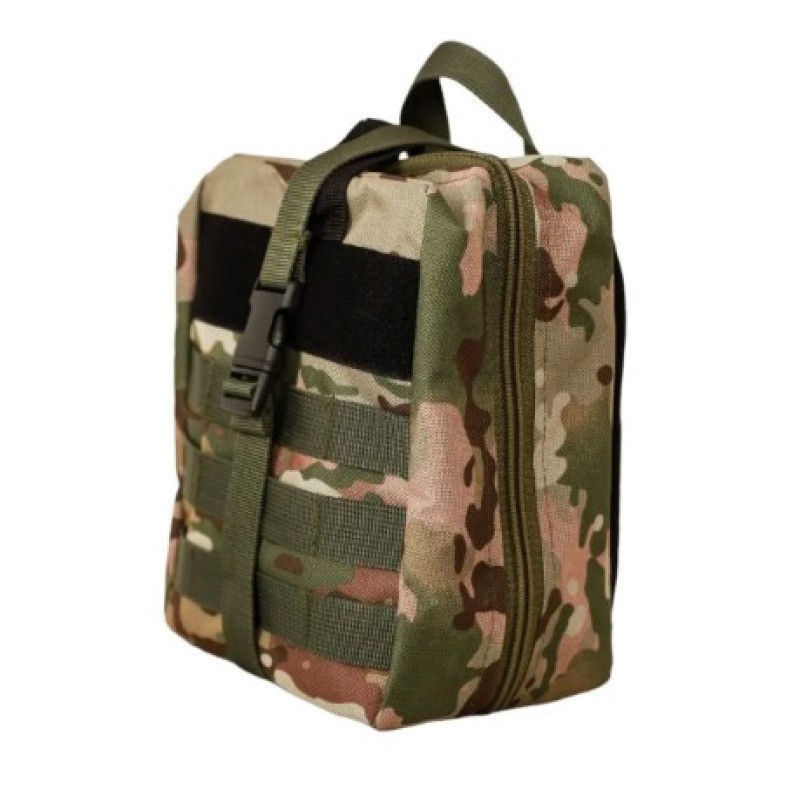 Аптечний підсумок швидкознімний  VS Teb German колір мультикам  Аптечний підсумок швидкознімний  VS Teb German колір мультикам  для розміщення індивідуального набору засобів першої допомоги. Попереду розміщена велкро панель для кріплення ідентифікатора та 3 ряди MOLLE. Має ручку для зручного переміщення. На звороті 3 ряди MOLLE та додаткові бретелі для горизонтального розміщення на легких страхових та розвантажувальних поясних ременях. А також липучка, що дозволяє виділити модуль самої аптечки від шлейки. Усередині аптечки є дві внутрішні кишені та еластичні гумки-фіксатори для розміщення та надійної фіксації необхідного індивідуального медкомплекту. А також додаткова окрема кишеня на застібці.