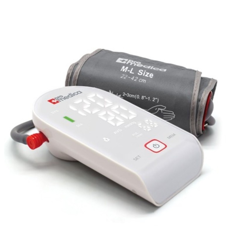 Тонометр ProMedica Superb – вершина лінійки тонометрів ProMedica. Великий інноваційний дисплей з LED підсвічуванням, що дозволяє проводити вимірювання у повній темряві, розширена пам'ять на 90 вимірювань для кожного з двох користувачів та автоматичний розрахунок середнього значення останніх 3-х вимірювань дозволяють отримати найбільш повну інформацію вимірювання АТ і пульсу в «мм. рт.ст.», або «кПа». Манжета збільшеної форми (22-42 см), універсальна для вимірювання артеріального тиску користувачами з різним охопленням передпліччя.